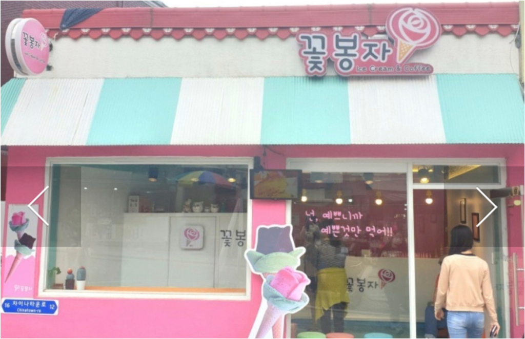 Kkotbongja Donghwamaeul Şubesi – Eğer daha önce hiç çiçek görünümünde dondurma külahı yemediyseniz, işte size sevimli bir tatlı durağı