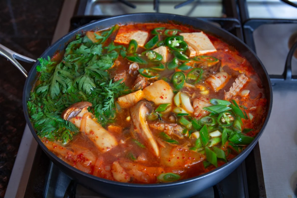 Baharatlı balık yahnisi , çeşitli balık türlerinin acı biber salçası, mantar ve çeşitli sebzelerle pişirildiği bir jjigae’dir (yahni) .
