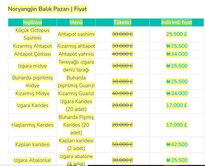 Noryangjin Balık Pazarı | Fiyatlar